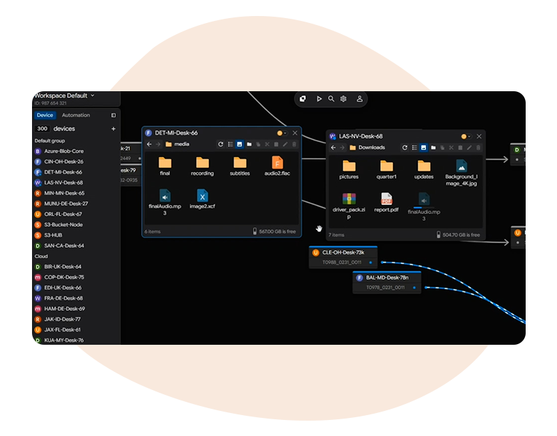 สามารถเข้าถึงไฟล์จากอุปกรณ์ระยะไกลหรือระบบต่าง ๆ ได้อย่างง่ายดาย และเริ่มโอนข้อมูลได้ทันทีโดยไม่ต้องตั้งค่า