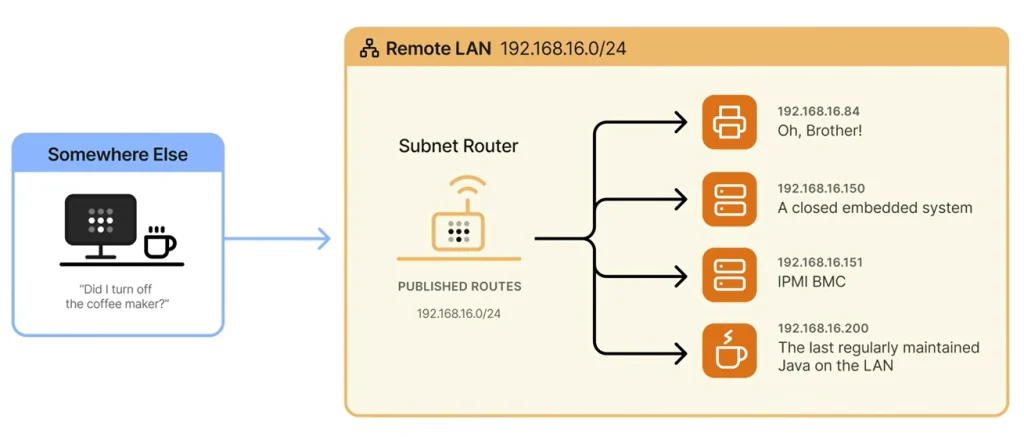- ให้เครื่องหนึ่งแชร์ Network ให้ทั้ง Network เช่น Proxmox share VLAN/Network ภายในออก Tailscale