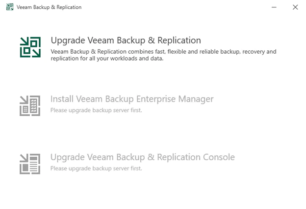 รูปที่ 3 ให้ท่านคลิ้กที่ Upgrade Veeam Backup & Replication