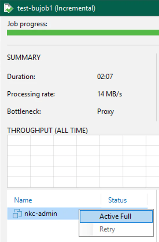 รูปที่ 3 การ retry และการใช้ active full ต่อ VM