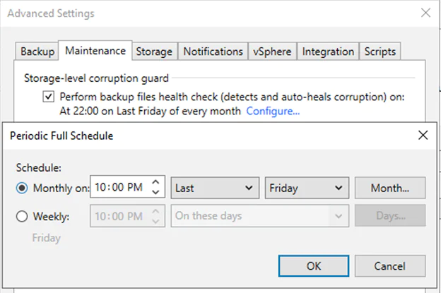 รูปที่ 4 การตั้งเวลาเช็คสุขภาพของไฟล์เพื่อตรวจหาความเสียหาย